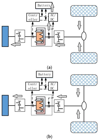 - Mechanical energy to mechanical energy conversion process: If the speeds of the armature and magnetic shafts are equal, there is only a mechanical energy conversion between the flywheel and the wheels, without the electromagnetic energy conversion between the battery and the electromagnetic coupler.