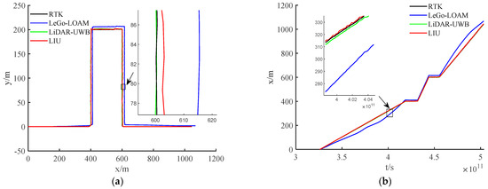 In autonomous driving technology, precise positioning is the basis for ensuring the stability and reliability of the entire system. In the research of positioning technology, multi-sensor fusion has become the best solution to improve the positioning accuracy. The positioning scheme in the urban environment mainly uses visual sensors, IMU, and GPS for fusion positioning, and this scheme can show a good positioning effect. For indoor environments, GPS cannot show good performance, and it is a very good choice to use ultra-wideband (UWB) to replace it [1]. Visual sensors have relatively high requirements in the environment. In order to adapt to the environment more widely, using LiDAR [2] as the main perception sensor is a very popular approach. In tunnels with a harsher environment and fewer feature points, the combination of LiDAR and UWB appears to be more effective [3,4], which has become the main solution to the positioning problem in coal mine tunnels.