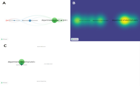 It can be deduced from Figure 7 that research organizations/institutions rarely collaborate on topics in this research domain (depicted in Figure 7A). The only collaborations among research institutes were shown in Table 2 and Figure 7B,C. Notable collaborations were between Beijing Jiaotong University’s School of Electrical Engineering, San Diego State University’s Department of Electrical and Computer Engineering, and Northwestern Polytechnical University’s School of Automation. This means that fewer international co-authored research papers have been published. It should be noted, however, that some of these international co-authored works have garnered widespread recognition, such as the 632 citation counts on publications created by Northwestern Polytechnical University’s School of Automation. As a result, more collaboration between research institutes should be encouraged in order to develop more valuable works.