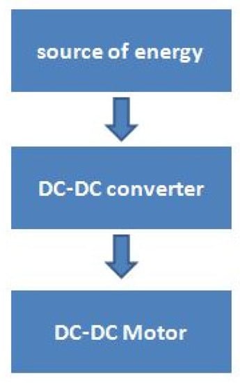 The traction chain, shown in Figure 1, is composed of a photovoltaic panel, a DC/DC converter, and a direct current motor.