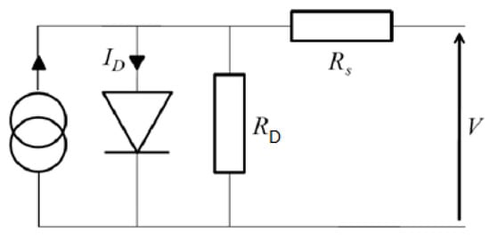 The photovoltaic module is based on a number of cells connected in series and in parallel. This last circuit is based on an ideal current source, which models the photo current Iph, associated in parallel with the diode, which represents the PN junction, to determine the voltage source. Two resistors (Rs and Rp) are added to represent the cell losses [5], as shown in Figure 2.