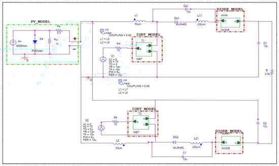 - Hanini, W.; Ayadi, M. Electrothermal Modeling of the Insulated Gate Bipolar Transistor (IGBT) Using PSpice: Application to DC–DC Converter. J. Control. Autom. Electr. Syst. 2021, 32, 507–521. [Google Scholar] [CrossRef]