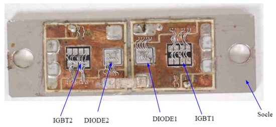 We studied a module in the form of an inverter arm containing two DIODEs and two IGBTs in antiparallel. Each of the components are made up of a silicon chip. The various components module is distributed exactly as shown in Figure 17. The module has a structure [19] containing six essential layers of different materials. Each layer is characterized by its thermal capacity (ρCi), its thermal conductivity (kiet), and its thickness (wi) (Figure 17).