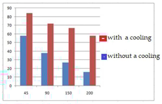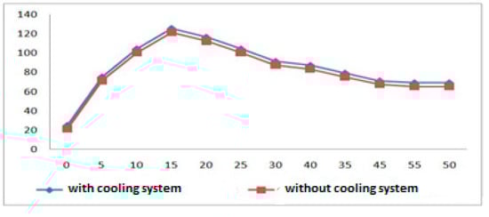 Figure 21 represent the temperature variation as a function of time with and without a cooling system.
