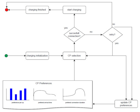 Similar to adaptation patters in natural systems, we expect that, due to increasing deployment of charging infrastructure, EV users will adapt their preferences to alternative CPs for reasons of distance or experienced occupancy (see Figure 2) [52,53,54]. Additionally, it has been found that pricing incentives also lead to adaptive charging behavior, in terms or arrival and departure times [55].