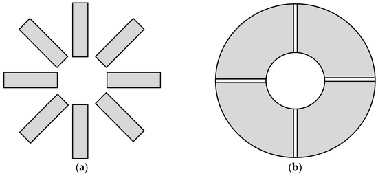 However, the proposed method is hard to directly apply to some special shields with more difficult structures, such as the octagon and sectors shields in Figure 24; these structure parameters are hard to determine and to find an optimal structure. Some approximate method should be used for these shields. For example, optimizing can be performed by approximating the sectors in Figure 23b as a whole circle.