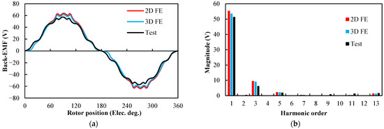 The comparison of line-to-line back EMFs with different winding configurations is shown in Figure 16. The harmonic contents in line-to-line back EMFs are similar to those in phase back EMFs except that the triple harmonics (the third and ninth harmonics) are eliminated in line-to-line back EMFs due to the symmetric three-phase winding layouts.