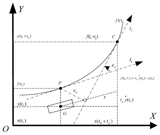 Figure 2 shows the optimal curvature model of the relative vehicle–road position; is the desired trajectory of the road, and the vehicle travels to the desired point after pre-aim time .