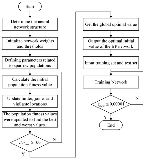 The SSA-BP neural network algorithm flow is shown in Figure 4, and the steps are as follows: