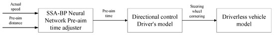 In summary, the driver model depends mainly on the forward-looking role of the pre-aim control, and the pre-aim model takes the road state at the pre-aim point as the basis for estimation, according to Equations (7) and (15), so the control amount is directly related to the pre-aim time. When actually driving, drivers will take different pre-sighting times for different road conditions. In this study, the SSA-BP neural network pre-aim time adjuster described in Section 3.3 was used to simulate the pre-aim time selection law of human drivers in different driving environments, and the directional driver control model was established according to Equation (16).