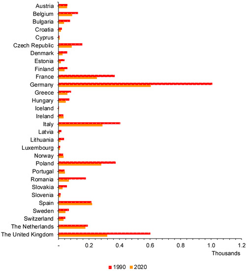 4]. However, when we addressed each country from the EU, we can observe that most countries reduced their emissions between 1990 to 2020 except Ireland, Norway, Portugal, Spain, and Turkey (as shown in