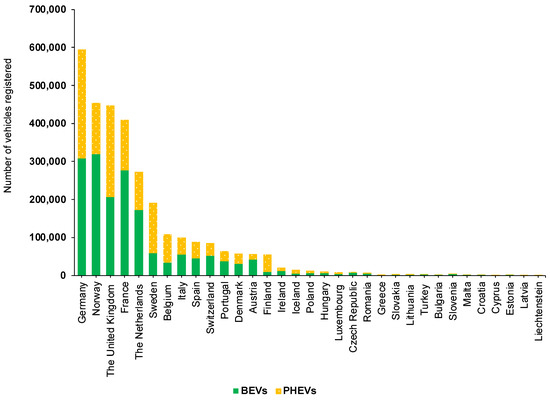 Indeed, examining the total number of BEVs and PHEVs registered in each country of the European region in 2020, we observe that Germany, Norway, the United Kingdom, France, and the Netherlands are the top five countries with a significant number of BEVs and PHEVs, while Liechtenstein, Cyprus, and Latvia are the countries with the fewest (as shown in
