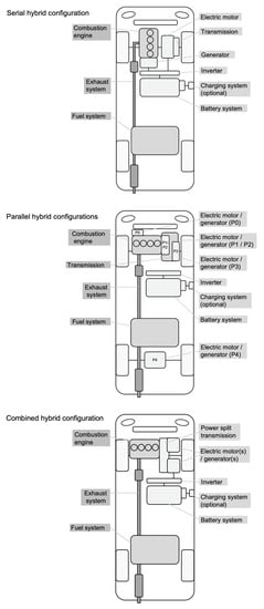 Hybrid propulsion systems are defined by a combination of combustion engine and electric powertrain. There are different architectures of hybrid powertrains available, which differ according to the arrangement of combustion engine and electric-drive unit, Figure 11.