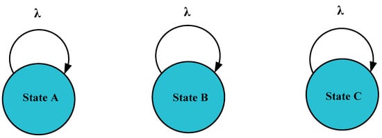 The probability with which each state occurs in the model shown in Figure 12 can be found by using Equations (17)–(24).