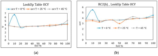 The voltage equation, VL, is given by Equation (1). An Incremental Open Circuit Voltage (OCV) test at different temperatures is employed to estimate the parameters, using the developed models, which are given in Figure 2.