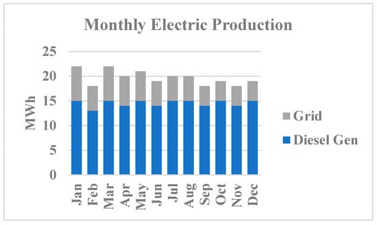 Figure 19. Monthly electricity production of diesel-based EVCS.