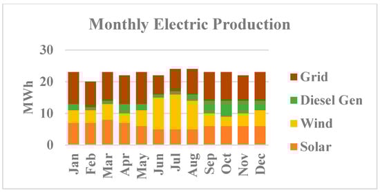 Figure 20. Monthly electricity production of diesel-renewable-based EVCS.