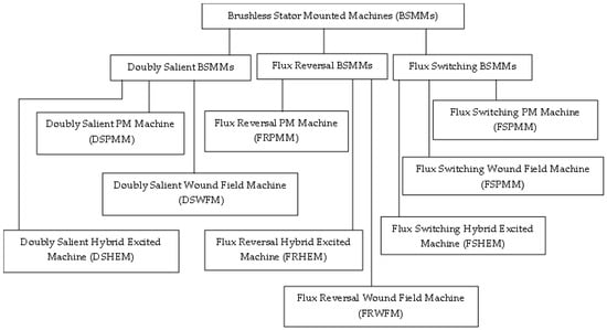 Based on excitation sources, flux switching BSMMs could be PM-excited (FSPMMs), DC wound field-excited (FSWFMs), or hybrid-excited (FSHEMs).