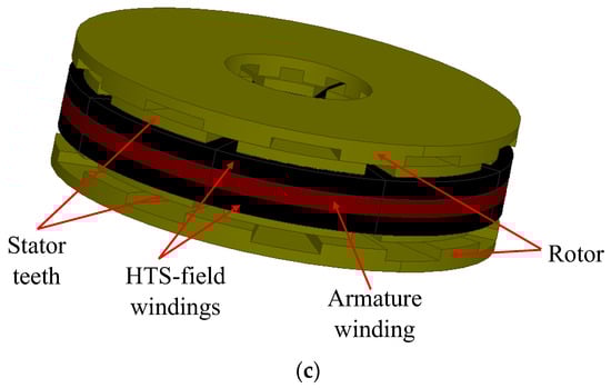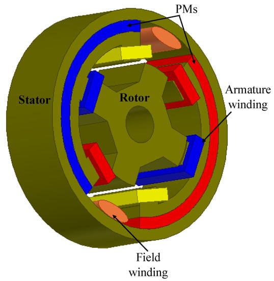 The advantages of FSPMMs, and those of FSWFMs, are unified to form a new configuration called ‘flux switching hybrid-excited machines’ (FSHEMs) [89], as shown in Figure 11.