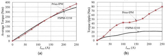 FSPMMs have inherent advantages, such as high power and torque densities, suitable heat dissipation, and a passive rotor structure suitable for high-speed traction motors [55,73]. However, economic issues are the main limitation of FSPM machines because of their relatively poor PM utilization factor. Furthermore, in view of the salient structure and high degree of saturation, FSPMMs may produce high torque ripple if a proper design is not adopted.