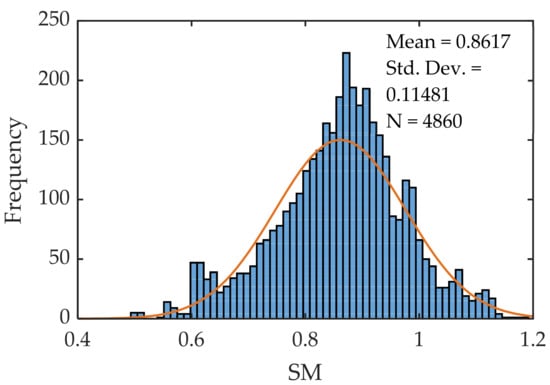 Thereafter, this indicator was scaled with the driving data into a rating. In Equation (4), the distance and speed of front vehicle, which are not measured in most data collections, are required. Lu et al. [37] provided the distribution of SM values from 34 taxi rides in Beijing (Figure 6).