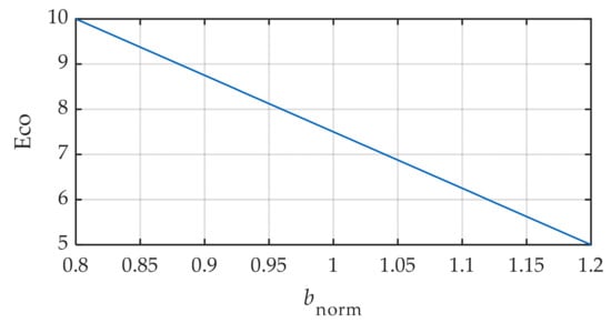 The distribution function of the normal distribution was used for scaling the comfort and safety indicators. Hence, the curve of the scaling had an S-shape (e.g., Figure 5). With an S-curve, the function value is degressive at both boundaries. The S-shaped scaling is suitable for subjective customer values, since the characteristics of various vehicle models and the expectations of different customers are similar to the normal distribution [52]. However, the objective variables, such as travel time and consumption, are different. When travel time or consumption is reduced, further reduction will be more difficult and costly. Therefore, the value should not be degressive.