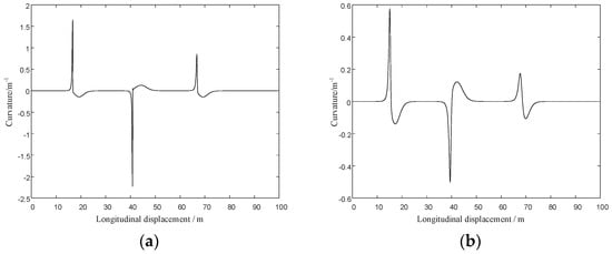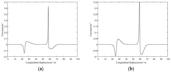 Curvature of the trajectory planned by the improved APF method; (a) trajectory curvature for single obstacle case; (b) trajectory curvature for multiple obstacles case.