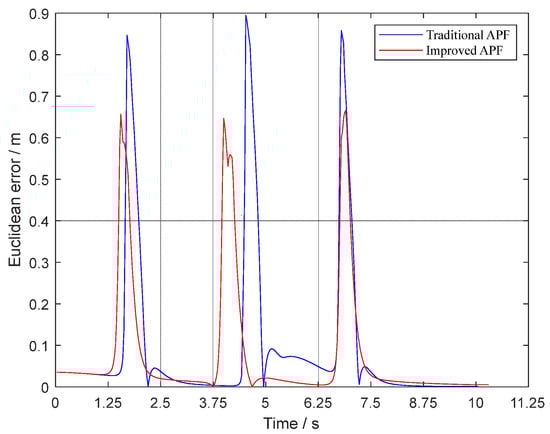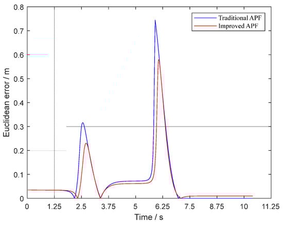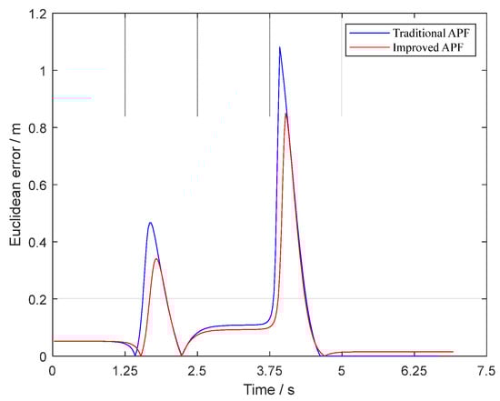 The simulation results of trajectory planned by the traditional and improved APF methods are shown in Figure 11 and Figure 12.