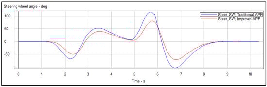 As can be seen in figure about Euclidean errors of trajectories planned, by using the same Carsim tracking model, the tracking Euclidean error of the trajectory planned by the improved APF is smaller, which indicates that the trajectory planned by the improved APF method is easier to be tracked. Due to the better tracked trajectory obtained, the steering wheel angle of the vehicle is smaller when tracking the trajectory planned by the improved APF. It indicates that the intelligent vehicle is easier to be maneuvered.