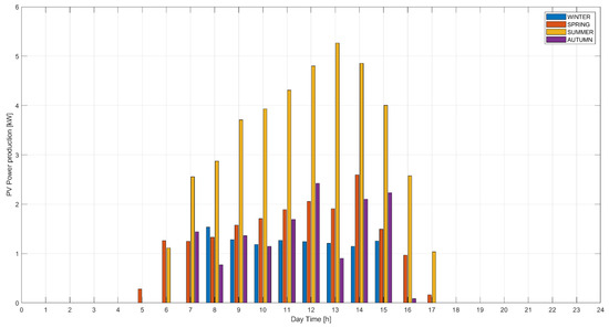 Figure 6 shows the PV energy production, detailed for 4 typical days representative of the seasons of the year.