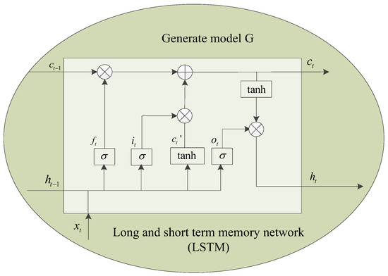 A recurrent neural network (RNN) can be used to process sequential data. The difference between RNN and other neural networks is that RNN records and learns the historical information of sequential data through periodically connected hidden layer nodes. However, RNN will have problems when dealing with time series in a long distance. Because the calculation of the connection between long-distance nodes will involve multiple multiplication of the Jacobian matrix, the phenomenon of gradient disappearance easily occurs, which means that the network has difficulties in retaining the sequence information with a long interval, and a long short-term memory (LSTM) network can solve this problem well. LSTM is an improved RNN. In order to overcome the gradient disappearance problem of RNN, LSTM redesigns the memory unit on the basis of RNN. Its structure is shown in Figure 5, which makes it more suitable for processing and predicting data with a long interval in the time series. Therefore, this paper designs and generates a model based on LSTM.