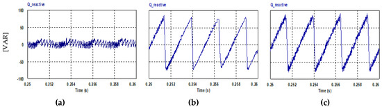 Steady state reactive power drawn by the motor (Nref = 1000 rpm, TL= 2.5 N.m): (a) PQ controlled FCS-MPC; (b) current controlled FCS-MPC; (c) hysteresis current controller.