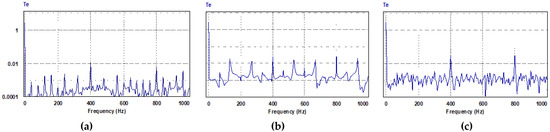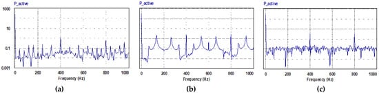 Harmonic spectrum of active power consumed by the motor (Nref = 1000 rpm, TL= 2.5 N.m): (a) PQ controlled FCS-MPC; (b) current controlled FCS-MPC; (c) hysteresis current controller.