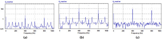 Harmonic spectrum of reactive power drawn by the motor (Nref = 1000 rpm, TL= 2.5 N.m): (a) PQ controlled FCS-MPC; (b) current controlled FCS-MPC; (c) hysteresis current controller.