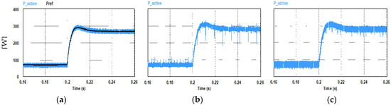 Steady state active power consumed by the motor (Nref = 1000 rpm, TL= 2.5 N.m): (a) PQ controlled FCS-MPC; (b) current controlled FCS-MPC; (c) hysteresis current controller.