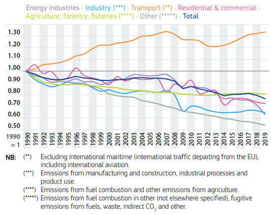- European Commission. EU Transport in Figures—Statistical Pocketbook 2021; European Commission: Brussels, Belgium, 2021; ISBN 9789279195082. [Google Scholar]