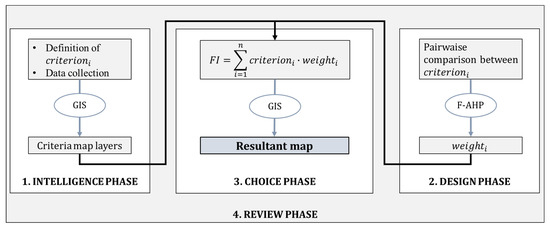 During this phase, the problem was shaped and the related descriptive parameters were defined. The data for each criterion were collected and processed in order to obtain the criteria maps.