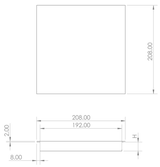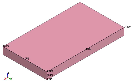 The battery protector consists of a combination of upper plate, cell structure, and lower plate that act as a sandwich structure with cell structure as the core. Both the upper plate and lower plate are made of Al2024-T351 and modeled with fully integrated shell element and piecewise linear plasticity material. The dimension of both the upper and lower plate is summarized in Figure 15.