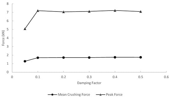 The damping factor is set to be 0.5 (maximum recommended value) due to its tendency to make the simulation more stable and the result of the convergence test, as shown in Figure 11.