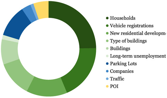Households: The number of households offers an improved overview of the population density since it is not limited by age groups. The attractiveness and potential of a charging station’s location is greater where the household density is higher. In this study, the municipality provided the most recent household distribution on a statistical district level.