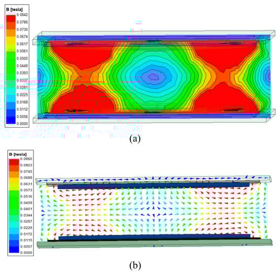(a) Magnetic field distribution diagram, (b) magnetic field distribution (vectorial).