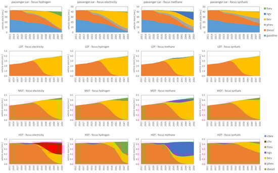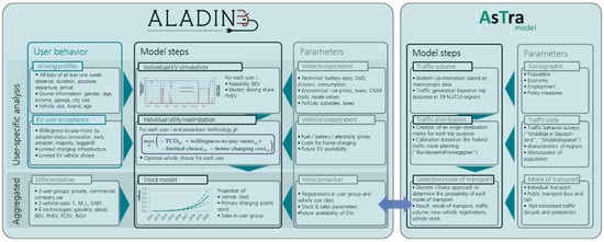 For this analysis, we used two models that have been the basis for several publications [,,]. The model ASTRA was used to determine the future development of transport demand in the different transport sectors. The model ALADIN was used to decide on the drive trains that will be used in future (see Figure 1 for model description and interaction).