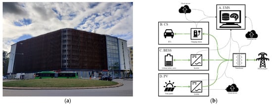 The energy system at Dansmästaren is divided into four subsystems, EMS (A), CSs (B), BESS (C), and PV (D), as shown in Figure 1. A more detailed description of the system can be seen in Table 1.
