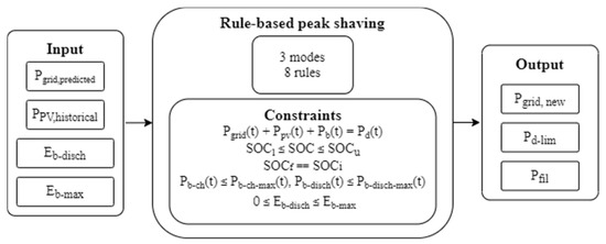 Diagram overview of rule-based peak shaving model. The input variables are presented and explained in Table 5.