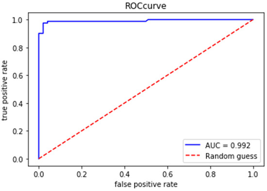The horizontal axis of the ROC (receiver operating characteristic) curve plot is the false-positive rate (FPR) and the vertical axis is the true-positive rate (TPR), an aggregate curve of several sets of data obtained by varying the classification threshold of the sample [24]. The AUC (area under the ROC curve) value is the area under the ROC curve in the coordinate system. The minimum value of AUC under normal conditions is 0.5 and the maximum value is 1.0, and the larger this value is, the more accurate the model prediction is.