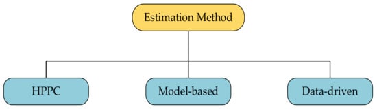 Due to the different definitions, the joint estimation of SOC, SOH, and SOP could not be performed by the experimental method [,]. The data-driven methods build prediction models by constructing the mapping relationship between system inputs (current, voltage and temperature) and outputs, thus realizing joint SOC/SOH and SOC/SOP estimations based on data-driven methods []. Based on the fusion of the above two joint estimation methods, the joint estimation method for the numerical–modular hybrid class can be obtained. The methods for joint estimation are classified into three types: model-based, data-driven, and number-model fusion [], which are shown in Figure 9.