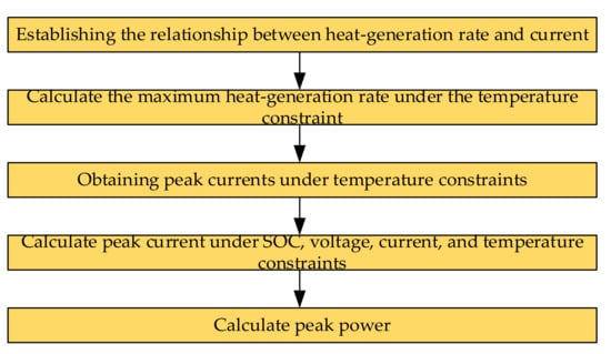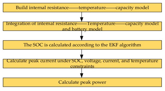 In SOP estimation, the interpolation method is simple and easy but not suitable for the continuous SOP estimation []. To conquer the weakness of the interpolation method, the model estimation method is proposed. Multi-parameter constraints are introduced in the estimation to achieve the prediction of sustained peak power, but the single constraint estimation error is large, and there is a local optimal solution in the multi-constraint estimation, so a data-driven approach is proposed to estimate the SOP. The data-driven estimation method effectively overcomes the local optimal solution problem, with the disadvantage that it requires a large amount of experimental data and is computationally intensive []. SOP estimation often uses SOC as a constraint and is influenced by capacity and internal resistance variation caused by battery aging []. From the above analysis, it is clear that the single estimation of SOP is not reasonable, and the joint estimation in multiple states is inevitable.