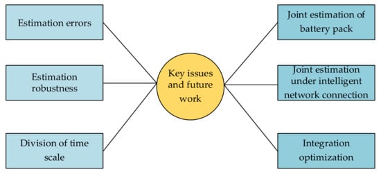 The advantage of the joint estimation method is that it can improve estimation accuracy and reduce the calculation cost, thus improving the power and safety and reducing costs of the electric vehicle. The use of joint estimation is conducive to promoting the popularity of electric vehicles, in line with the national demand for the development of electric vehicles [,,]. This paper mainly summarizes the joint estimation methods of SOC/SOH and SOC/SOP and proposes the inadequacy of existing research and future prospects.
