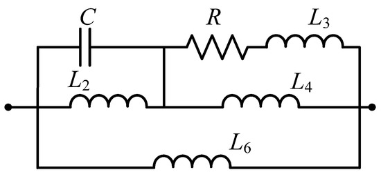 where L1, L2, L3, L4, L5, and L6 are fractional-order inductors, R and C are the resistor and the fractional-order capacitor, respectively. α and β are the fractional-order inductance order and the fractional-order capacitance order, respectively. In the Y1 (s) structure, at least three of L2, 1/L3, L4 and L6 are zero, and in the Y2 (s) structure, at least three of 1/L1, 1/L2, L3 and 1/L5 are zero. For example, in Figure 3, when L3, L4 and L6 are zero, it is a structure in which a fractional-order inductor is connected in parallel with a fractional-order capacitor, and then connected in series with a resistor. In Figure 4, when 1/L2, 1/L3 and 1/L5 are zero, it is a fractional-order capacitor in series with a fractional-order inductor, and then in parallel with a resistor.