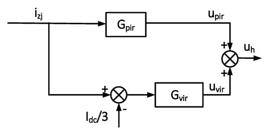 As shown in Figure 5, and constitute the virtual impedance part together, with input as the bridge arm harmonic circulation and output as the correction component of the modulated wave.